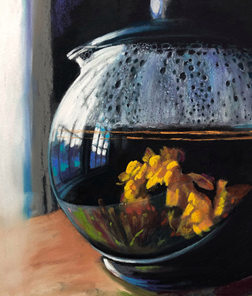 Pastel is an art medium consisting of pure powdered pigment and a binder, the same as those used in oil paints, but more permanent. The color effect of pastels remains closest to the raw pigments. Pastels have been used by artists since the Renaissance. Degas, Manet, Cassatt and Toulouse-Lautrec painted with pastels. Edvard Munch’s fourth version of The Scream was completed in pastel and sold for $120M. Works are done on an acid free archival quality support and properly mounted and framed under art glass. The tooth of the sanded paper holds the pastel fragments. Light bounces through these captured fragments and creates a crystallized effect. This gives pastel paintings their unique appearance setting them apart from any other medium.